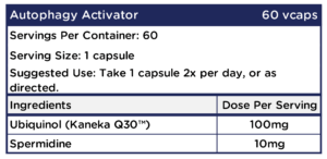 Autophagy is the body’s natural self-preservation mechanism for removing damaged or dysfunctional debris within cells and recycling them to regenerate new, healthier cells. Low autophagy is associated with a variety of diseases such as cancer, type-2 diabetes, dementia and cardiomyopathy.