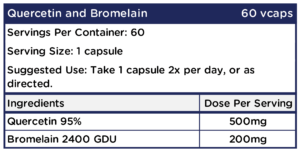 Quercetin-bromelain is a bioflavonoid complex with antioxidant and mast cell stabilizing properties.